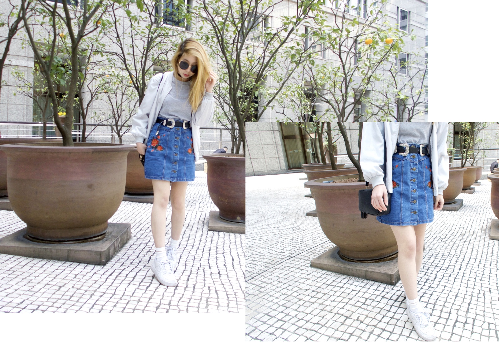 Whoever said florals are too cliché for Spring definitely hasn't seen this denim skirt with symmetrical floral embroidery. I'm so in awe with Japanese fashion lately that the inspiration behind look number one is Tokyo street style! Take a brisk walk through Harajuku and there are plenty of girls in denim skirts, bomber jackets and chokers. And who can blame them, I think it's such a playful, youthful look.