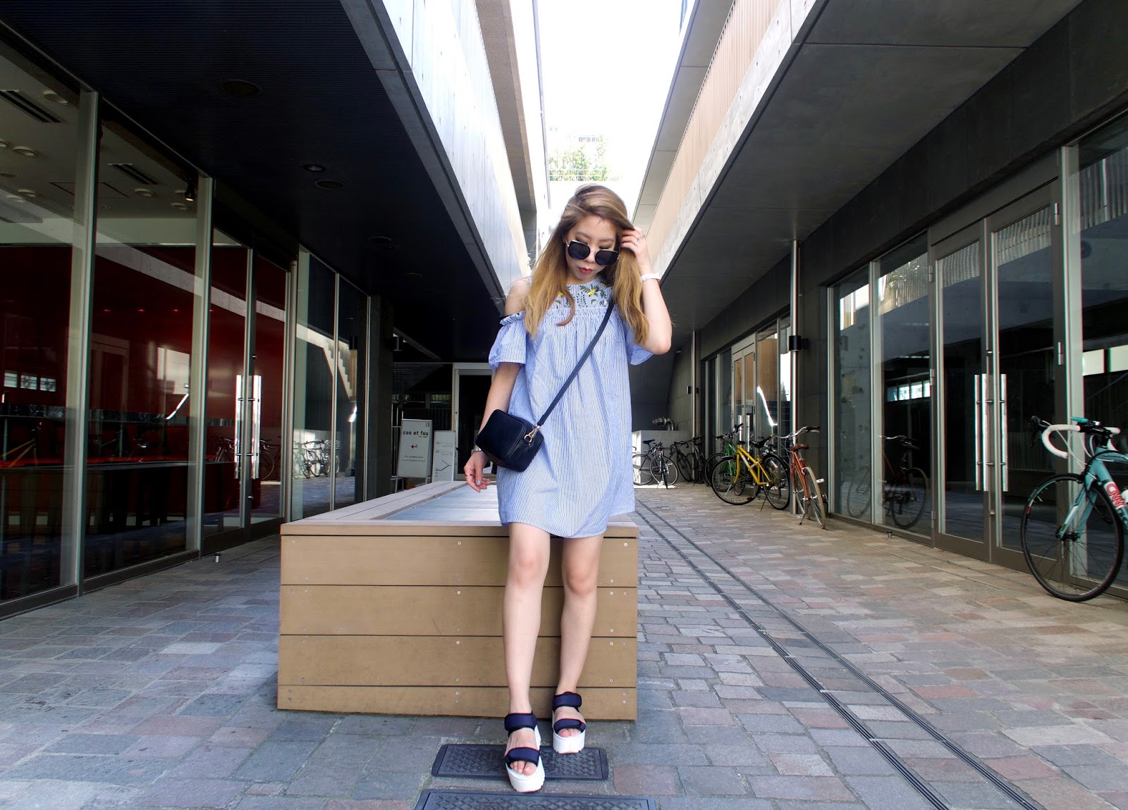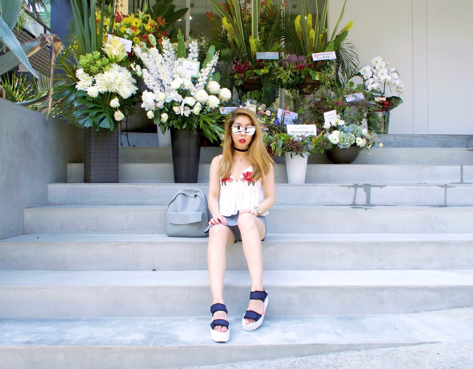 I put together this look for something comfy and breathable for a scorching day walking about Harajuku - Inject some bohemian chic into your Summer look with this cute rose patch top from Shein that'll have you looking festival ready in no time at all. Also debuting my new Twoobs platforms that are made with memory foam for the most comfortable shoe ever!