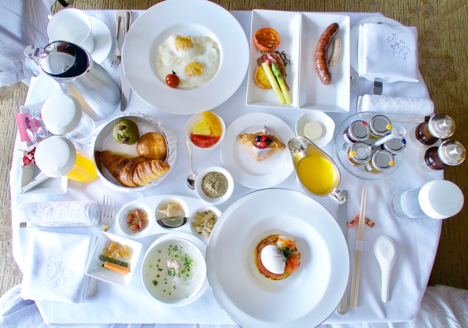 Our breakfast spread was incredible. With choices from congee to American style breakfast, there's something to suit all tastes. We ordered the crab congee which arrived with century old egg! A lobster eggs benedict, an American breakfast, award winning pastries, juice and of course, coffee. Suffice to say breakfast was our most important and extravagant meal of the day.